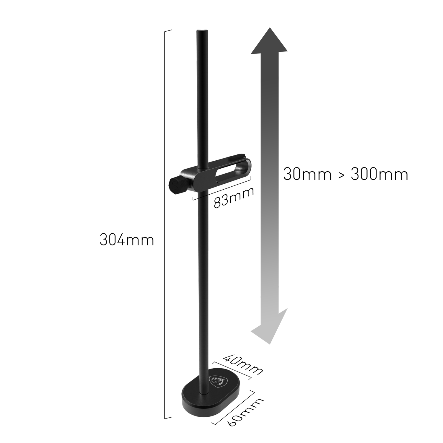 - Altura regulable de 30 mm a 300 mm con ajuste deslizante.