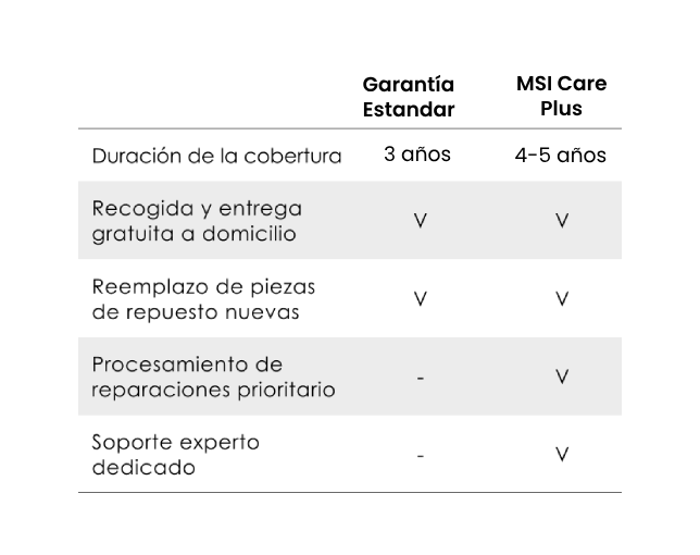 Disfruta de tu dispositivo MSI por más tiempo que el período de garantía estándar sin perder la tranquilidad.