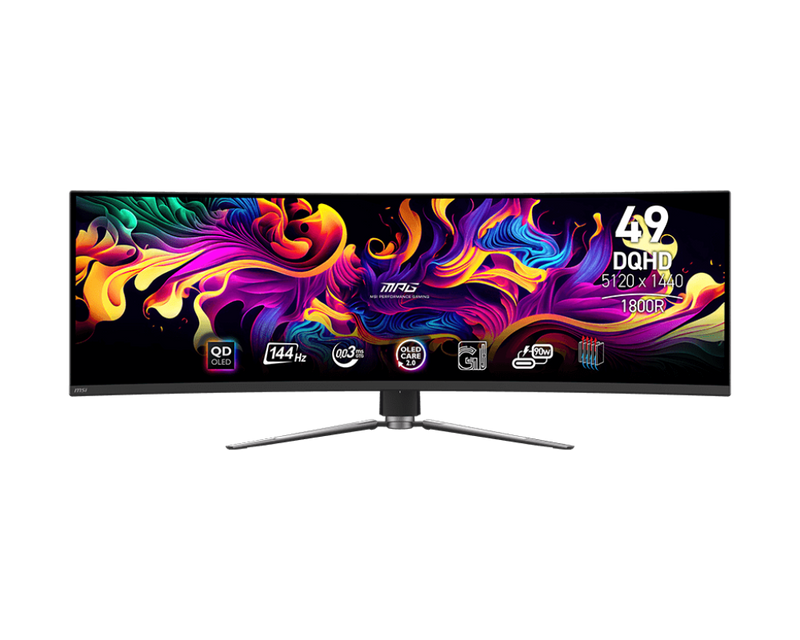 L'écran panoramique de 49 pouces (124,46 cm) présente une courbure de 1800R (rayon de 1800 mm) pour une immersion subtile et une visualisation plus facile au format ultra-large (32:9). Il prend en charge des angles de vision larges de 178° avec une altération minimale des couleurs lorsqu'il est regardé sous différents angles.