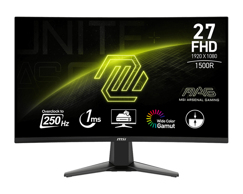 Équipé d'une dalle VA incurvée (1500R) de 27 pouces FHD (1920 x 1080), d'un taux de rafraîchissement de 250 Hz (OC) et d'un temps de réponse de seulement 1 ms, l'écran gaming incurvé MAG 27C6X offre un avantage compétitif sur la plupart des adversaires. Le MAG 27C6X dispose d'un support inclinable ainsi que de la technologie Adaptive-Sync, qui synchronise les taux de rafraîchissement de l'écran et de la carte graphique pour un gameplay ultra-fluide.
