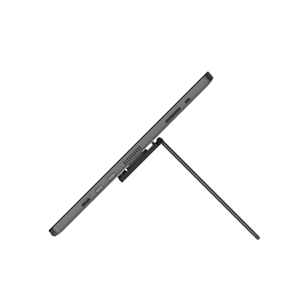 • Soporte plegable de diseño ergonómico con un diseño de 0° ~ 180° que permite orientar la pantalla tanto en modo vertical como horizontal.