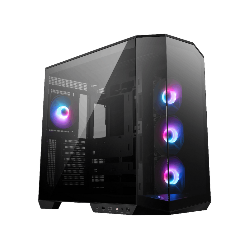 - Incluye 3 ventiladores ARGB de 120 mm con aspas inversas preinstalados en el lateral y 1 ventilador ARGB de 120 mm en la parte trasera.