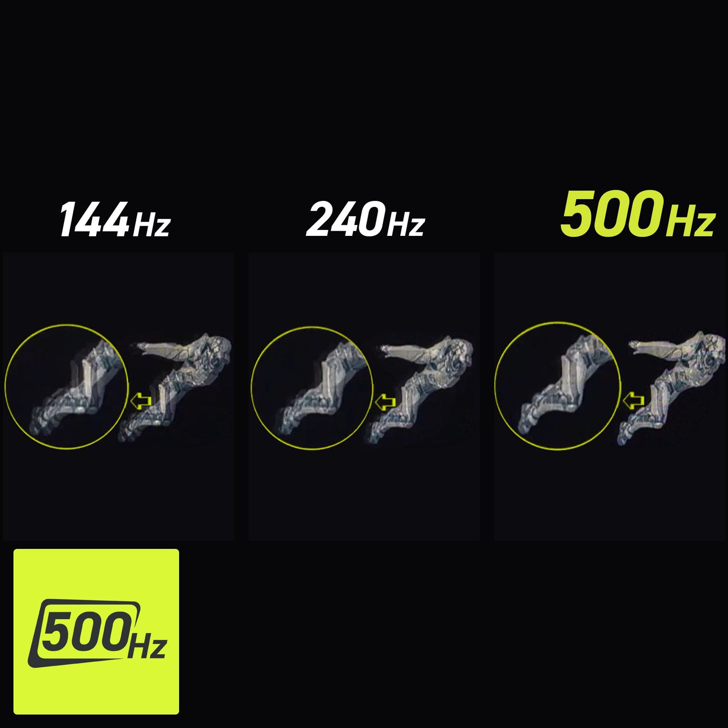 - Fastest 0.03ms GtG response time and 500Hz refresh rate.