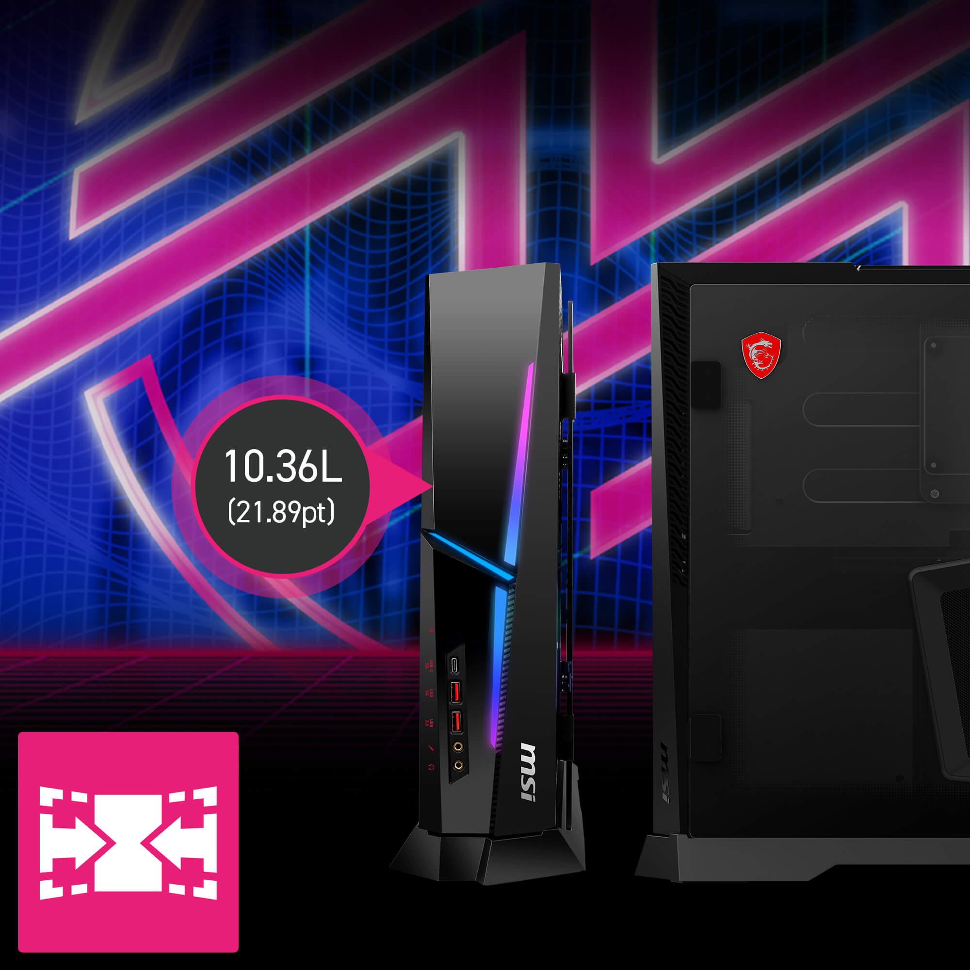 Le MPG Trident AS AI est doté d'un châssis incroyablement compact (137 x 396 x 410 mm), qui prend très peu de place sur un bureau et rend ce système très performant facilement transportable.