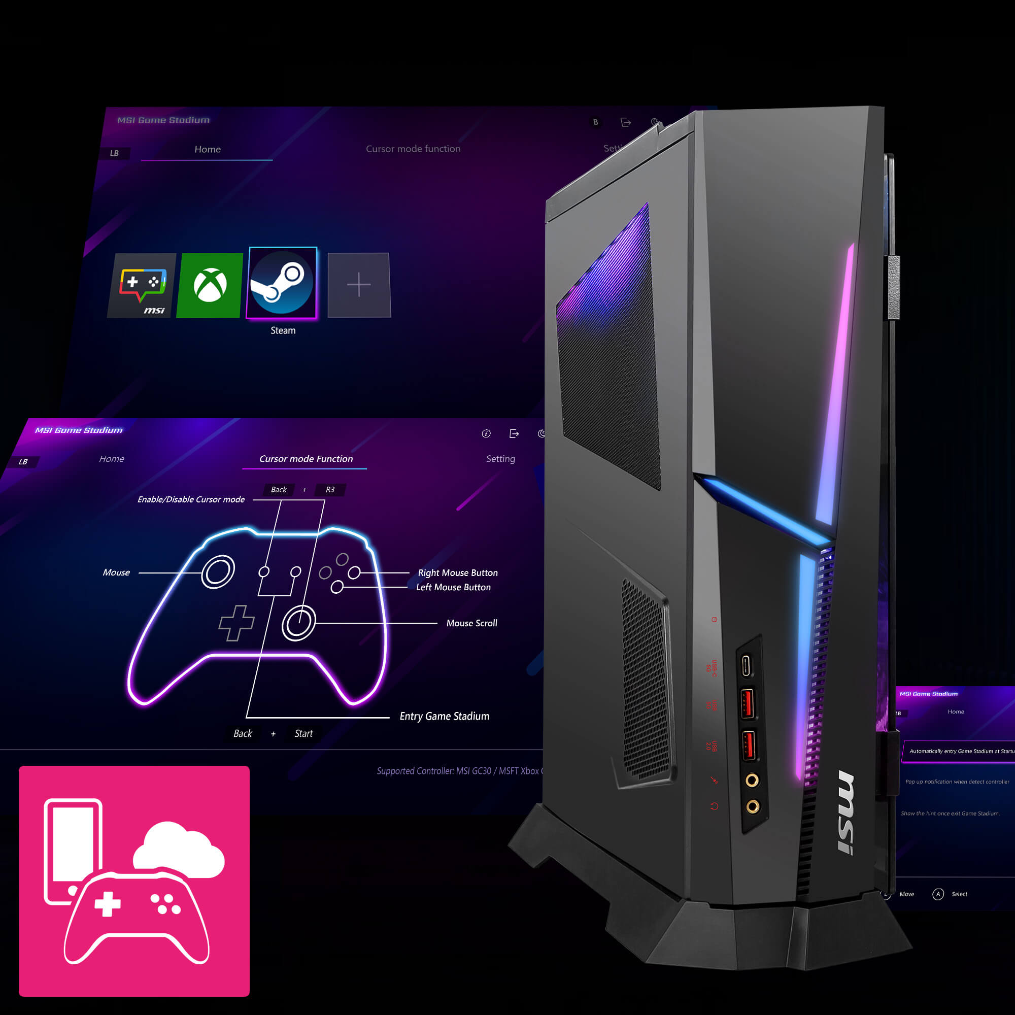 MSI Game Stadium vous permet d'accéder à tous vos logiciels de divertissement préférés en un seul endroit. Tout, du cloud gaming au streaming vidéo en passant par les jeux mobiles, s'affiche sous vos yeux en un clin d'œil, enrichissant votre divertissement avec une seule manette de jeu.