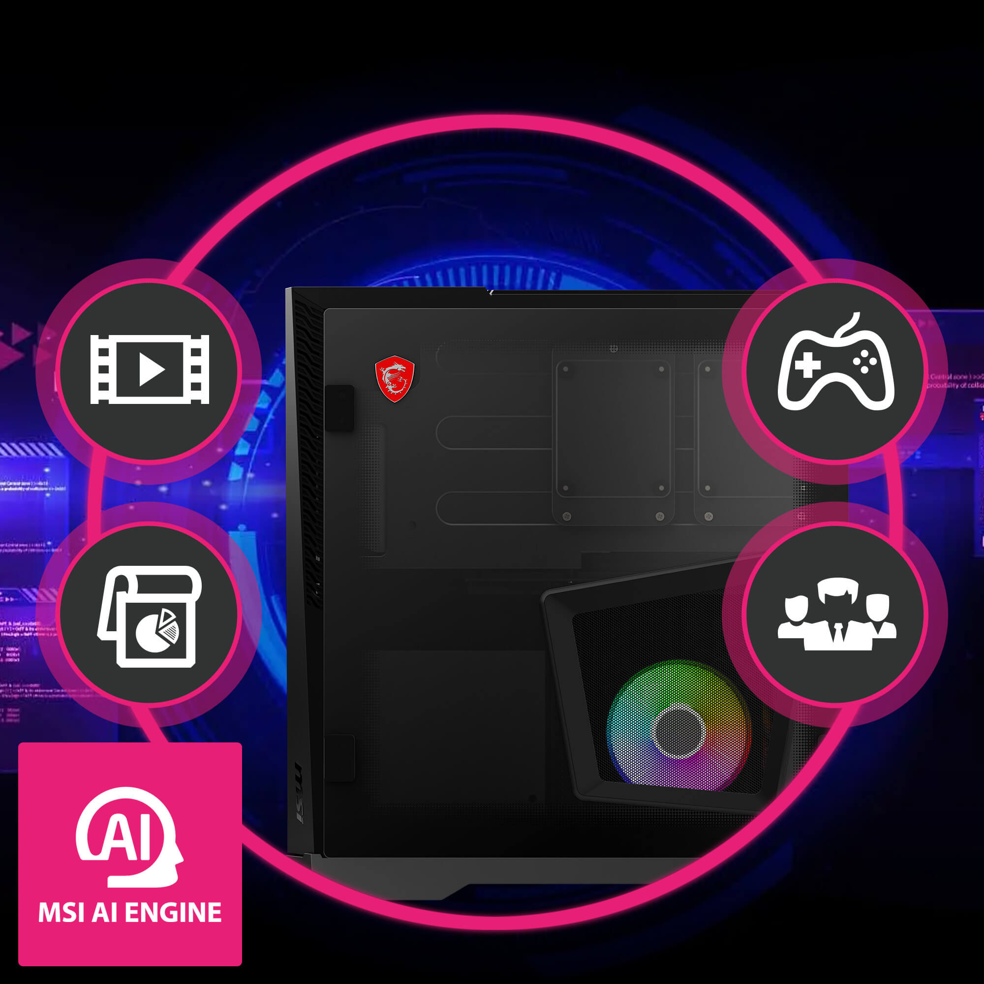 Le MPG Trident AS AI est équipé d'une carte graphique NVIDIA GeForce RTX™, qui vous permet de libérer tout le potentiel de l'IA. Doté de la technologie DLSS et du ray tracing, il offre une créativité accrue, une productivité améliorée et une expérience de jeu ultra-rapide.
