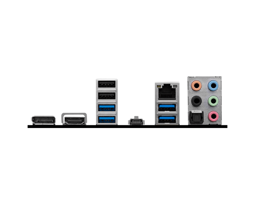 | Onboard Graphics | 1x HDMI™ Support HDMI™ 1.4 with HDR, maximum resolution of 4K 30Hz* 1x DisplayPort Support DP 1.4, maximum resolution of 4K 60Hz* *Available only on processors featuring integrated graphics. Graphics specifications may vary depending on the CPU installed. |